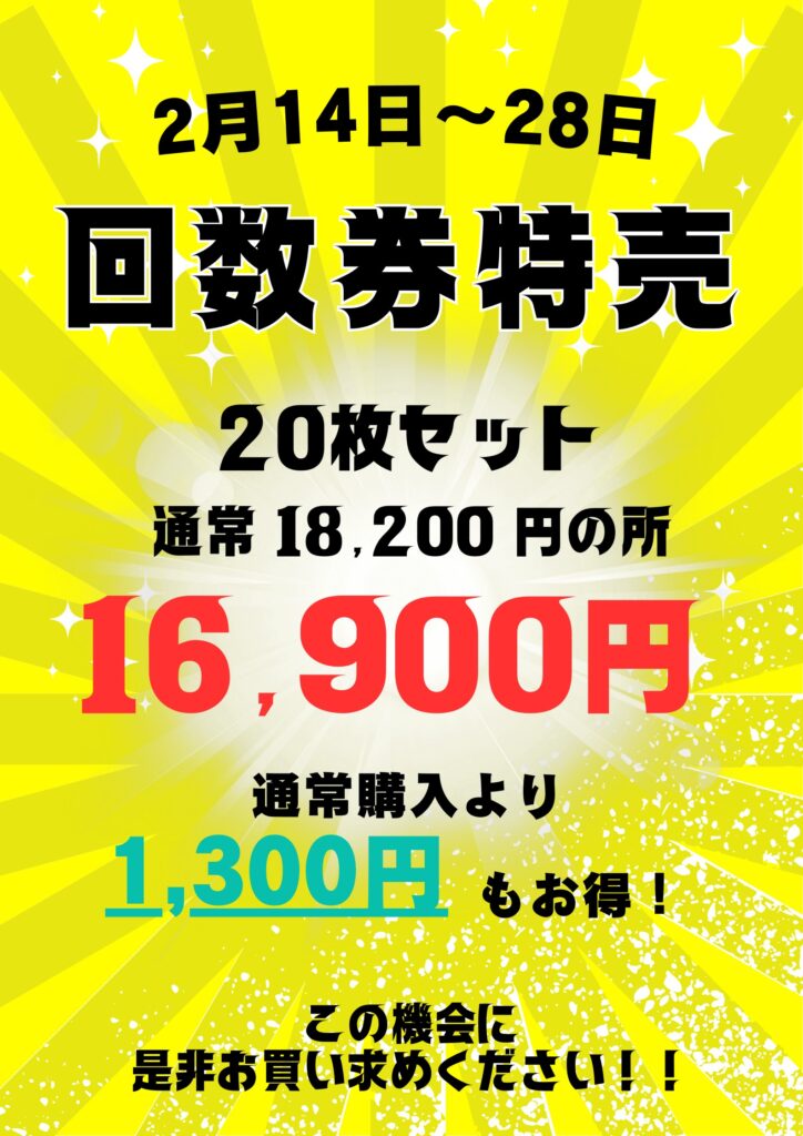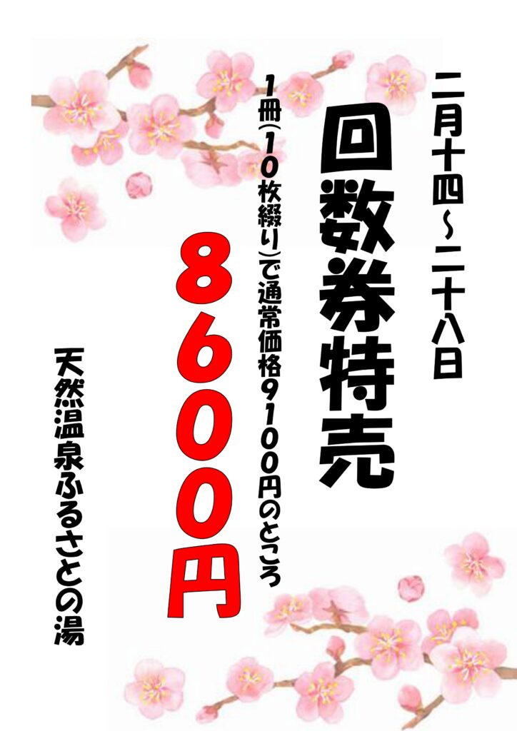 回数券特売のお知らせ 続きを読む »